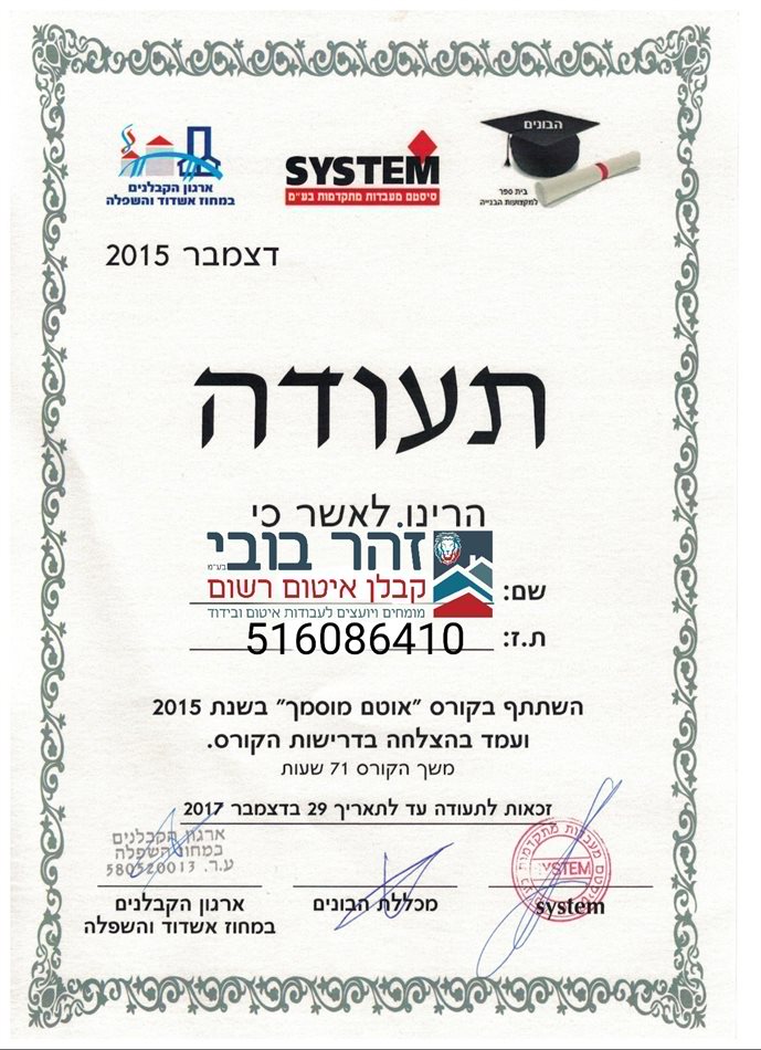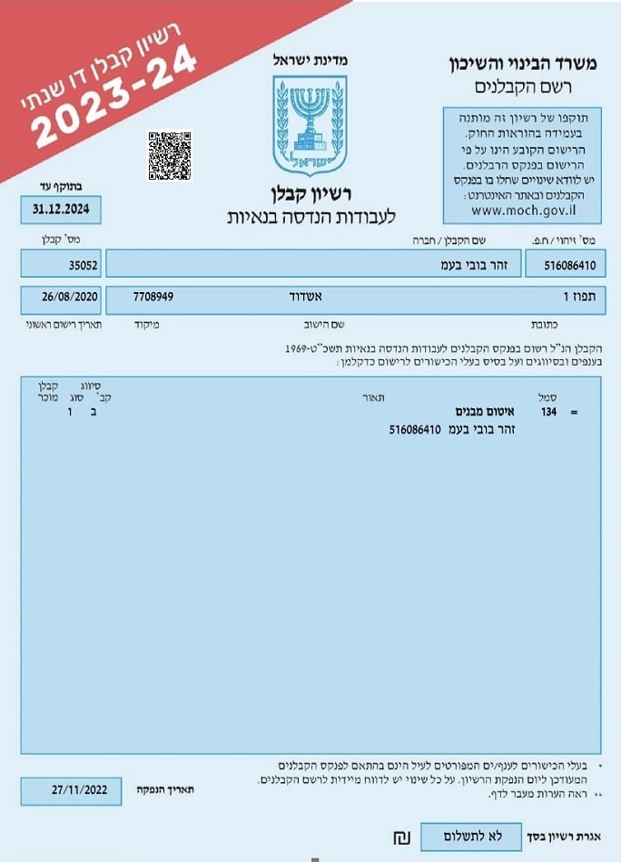 קבלן איטום רשום - רישיון קבלן איטום מס' 35052